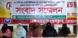সোনাইমুড়ীতে মহিলা জামায়াতের কুরআন তালিমে হামলার প্রতিবাদে সংবাদ সম্মেলন