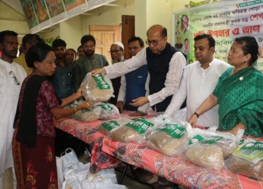 শোক দিবসে কৃষকলীগের ত্রাণ সামগ্রী বিতরণ