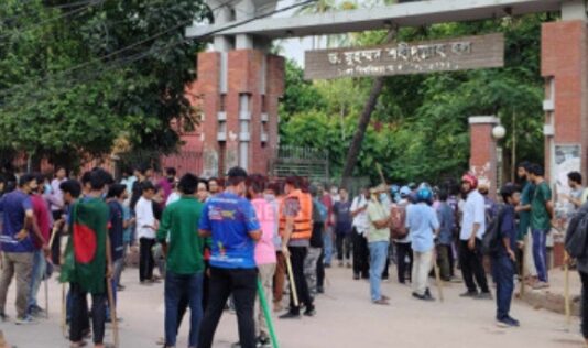 টিএসিতে ছাত্রলীগ, শহীদুল্লাহ হলের সামনে আন্দোলনকারীরা