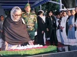 ধানমন্ডিতে বঙ্গবন্ধুর প্রতিকৃতিতে প্রধানমন্ত্রীর শ্রদ্ধা