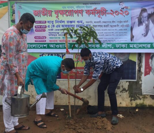 প্রধানমন্ত্রীর স্লোগানকে ধারণ করে বৃক্ষ রোপণ করলো স্বেচ্ছাসেবক লীগ
