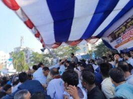 সমাবেশে মঞ্চ ভেঙে পড়ে গেলেন বিএনপি নেতারা