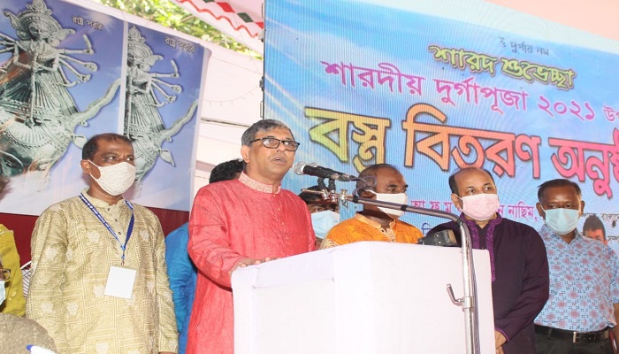 মঙ্গলবার ( ১২ অক্টোবর) সকালে রাজধানীর ঢাকেশ্বরী মন্দিরে শারদীয় দূর্গাপূজা ২০২১ উপলক্ষে বস্ত্র বিতরণ অনুষ্ঠানে তিনি এ কথা বলেন।