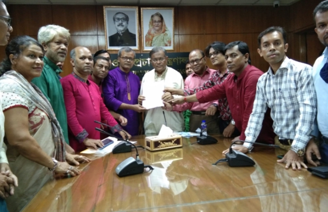 ডিইউজে সভাপতি সোহেল হায়দার চৌধুরীর নেতৃত্বে সিনিয়র সহ-সভাপতি এম. এ. কুদ্দুস, সহ-সভাপতি মানিক লাল ঘোষ, সাধারণ সম্পাদক আকতার হোসেন, যুগ্ম সম্পাদক খায়রুল আলম, কোষাধ্যক্ষ আশরাফুল ইসলাম, সাংগঠনিক সম্পাদক এ জিহাদুর রহমান জিহাদ, আইন বিষয়ক সম্পাদক এস এম সাইফ আলী, দপ্তর সম্পাদক আমানউল্লাহ আমান, কল্যাণ সম্পাদক জুবায়ের রহমান চৌধুরী, নারী বিষয়ক সম্পাদক সুরাইয়া অনু, নির্বাহী সদস্য ইব্রাহীম খলিল খোকন, আসাদুর রহমান, সলিম উল্লাহ সেলিম, আনোয়ার হোসেন, মহিউদ্দিন পলাশ, রেহানা পারভীন, শফিক বাশার, কুদ্দুস আফ্রাদ প্রমুখ এসময় ডিইউজের ১০ দফা দাবি সম্বলিত একটি পত্র তথ্য ও সম্প্রচারমন্ত্রীর কাছে হস্তান্তর করেন।