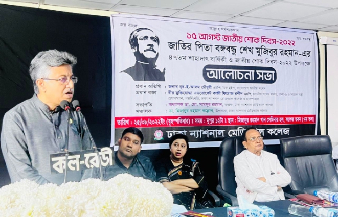 বৃহস্পতিবার (২৫ আগস্ট) ঢাকা ন্যাশনাল মেডিকেল কলেজে জাতীয় শোক দিবস ও বঙ্গবন্ধুর ৪৭তম শাহাদৎবার্ষিকী উপলক্ষে আয়োজিত আলোচনা সভায় প্রধান অতিথির বক্তব্যে তিনি এসব কথা বলেন। আলোচনা সভার পূর্বে কলেজে স্থাপিত বঙ্গবন্ধুর ম্যুরালে পুস্পস্তবক অর্পন করা হয়।