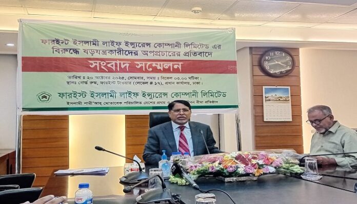 গতকাল ফারইস্ট ইসলামি লাইফ ইন্স্যুরেন্স কোম্পানী লিমিটেডের বিরুদ্ধে ষড়যন্ত্রকারীদের অপপ্রচারের প্রতিবাদে সংবাদ সম্মেলনে এসব কথা বলা বলেন তিনি।