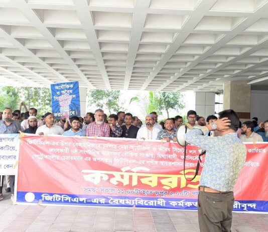 ৩ দফা দাবীতে জিটিসিএলের কর্মকর্তা-কর্মচারীদের কর্মবিরতি