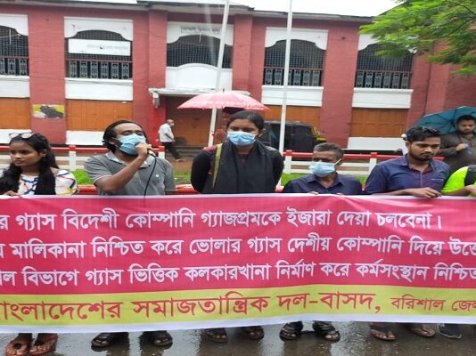 বাপেক্সকে দিয়ে ভোলার গ্যাস উত্তোলনের দাবিতে সমাজতান্ত্রিক বাসদের বিক্ষোভ