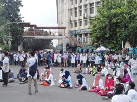 ৪ দফা দাবি আদায়ে শাহবাগে মেডিকেল শিক্ষার্থীদের বিক্ষোভ