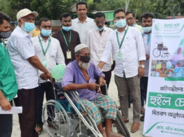 জামালপুরে দোস্ত এইডের পক্ষ থেকে অর্ধশত হুইলচেয়ার বিতরণ