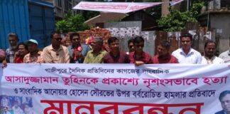 সোনাইমুড়ী সাংবাদিক হত্যার প্রতিবাদে মানববন্ধন