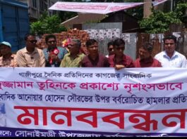 সোনাইমুড়ী সাংবাদিক হত্যার প্রতিবাদে মানববন্ধন